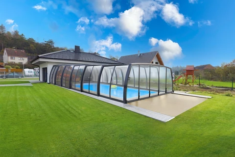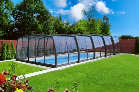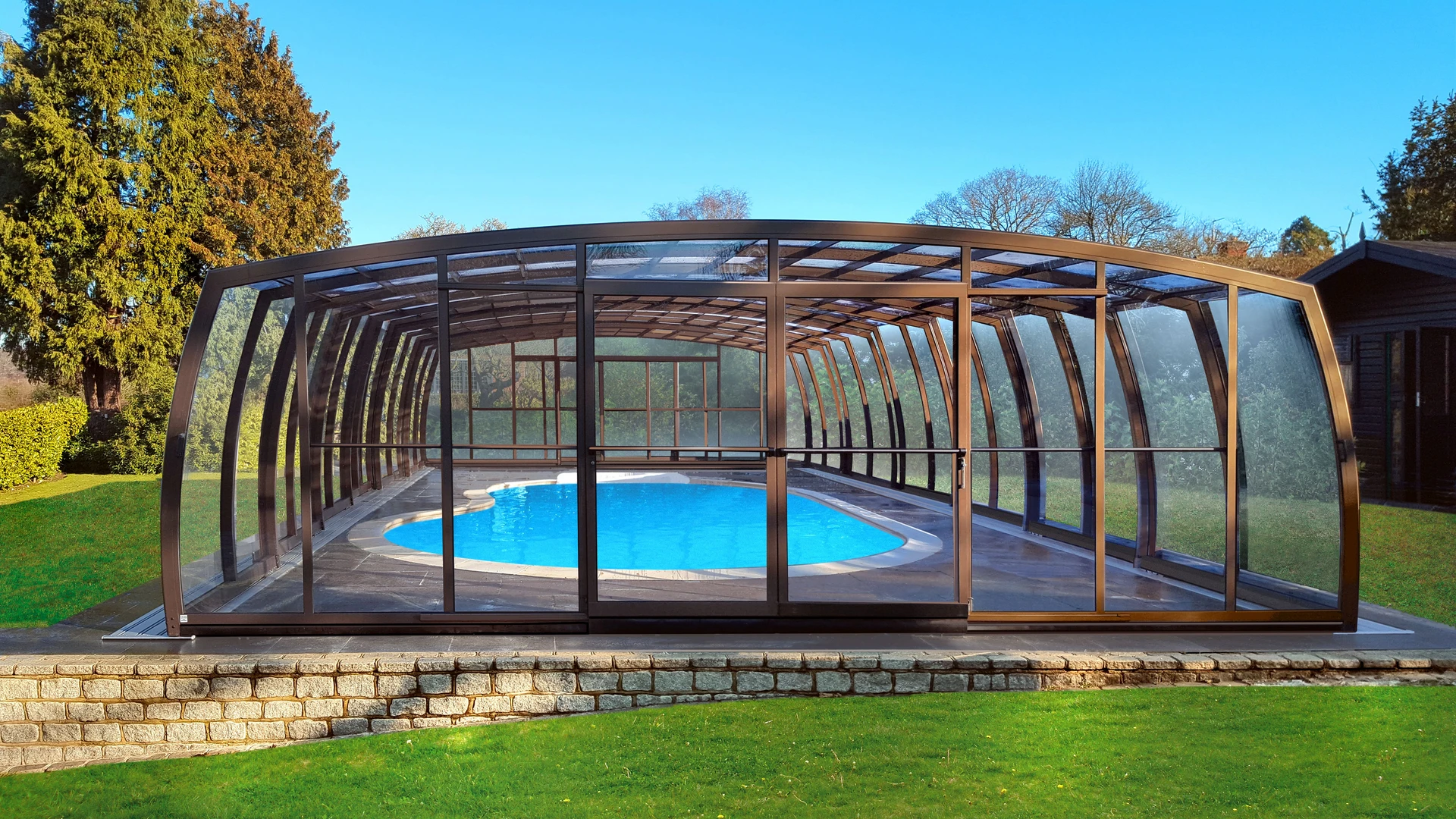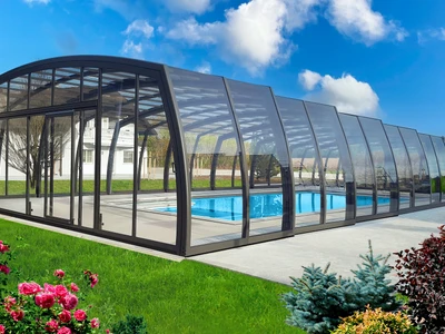 La combinaison de formes arrondies et d’arêtes d’origine permet à la hauteur de l’abri d’augmenter très peu avec l’élargissement des dimensions. Ainsi, même pour des piscines de grande taille, l’abri conserve une apparence élégante et discrète. OMEGA™ se distingue particulièrement dans les jardins spacieux, auprès des constructions modernes, mais aussi des maisons familiales classiques dont les propriétaires souhaitent un abri généreux pour leur piscine.