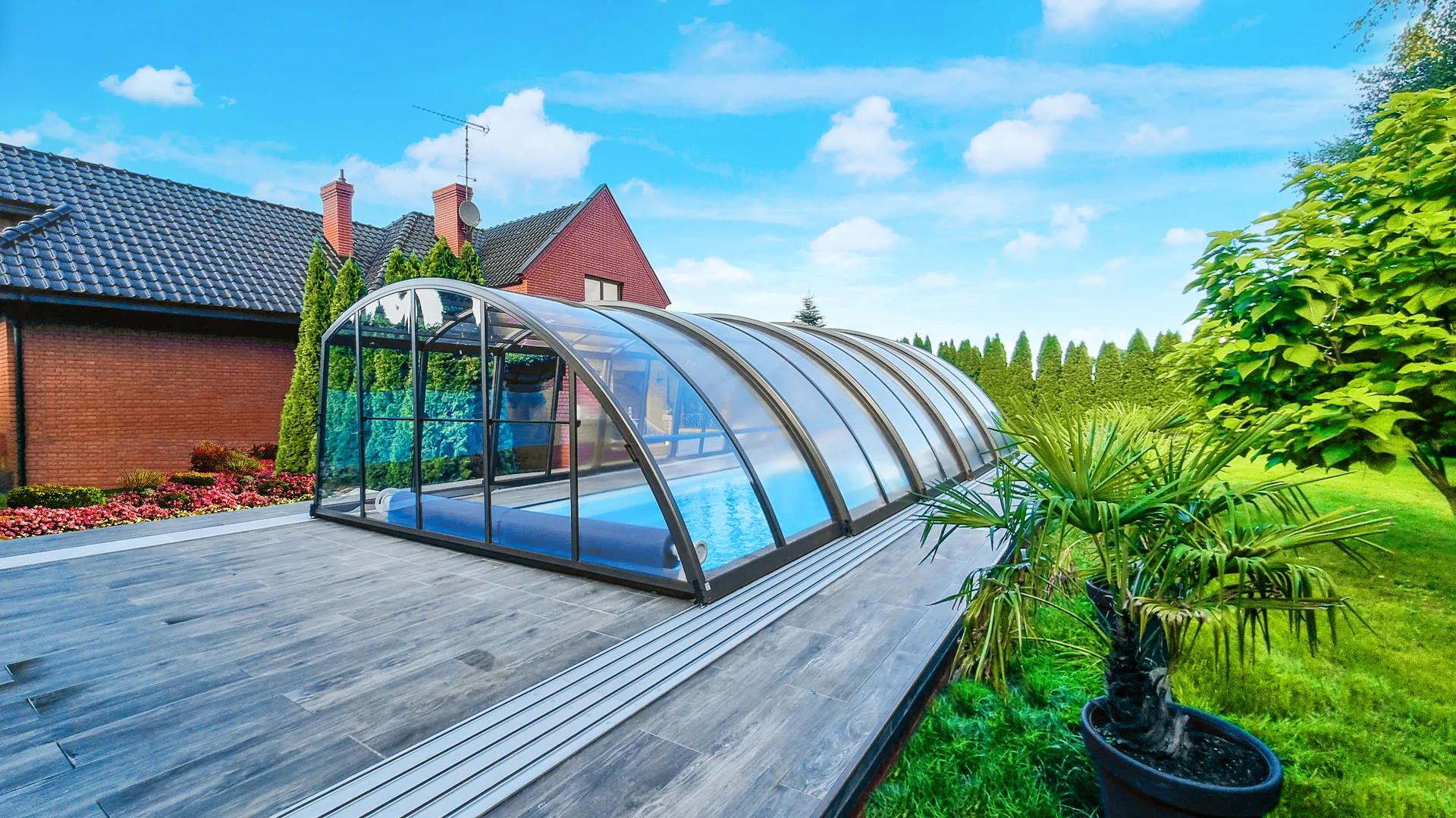 Si l’investissement initial est plus élevé par rapport aux autres solutions pour couvrir une piscine, l’abri s’inscrit dans une démarche durable : Il prolonge la saison de baignade de plusieurs mois et valorise durablement votre espace extérieur en créant, selon sa configuration, un espace de vie supplémentaire.